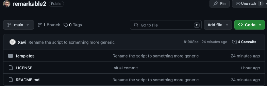 A year ago I posted some articles about customising the reMarkable 2. The device is great and easy to play with, but every OTA update sent will remove every customisation. I've been manually re-installing them until a point that I reduced the custom templates due to the work that the installation implies.